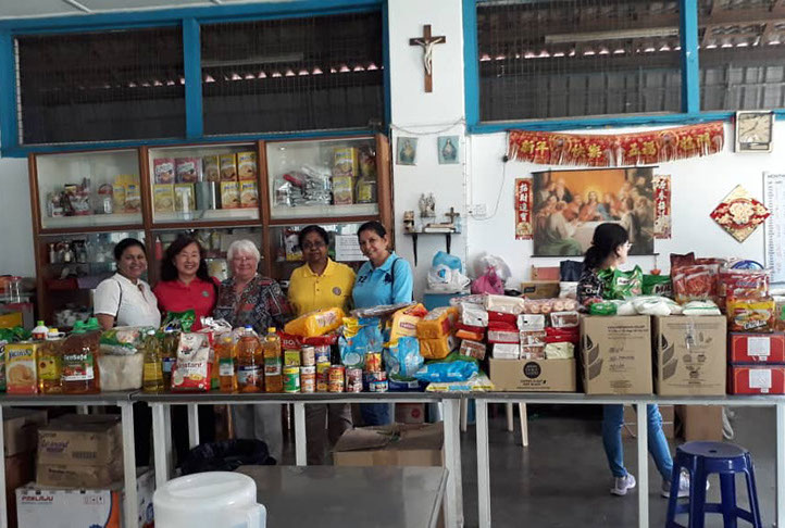 These are the sponsored goods donated to the Lighthouse with members of the Inner Wheel Club of Penang