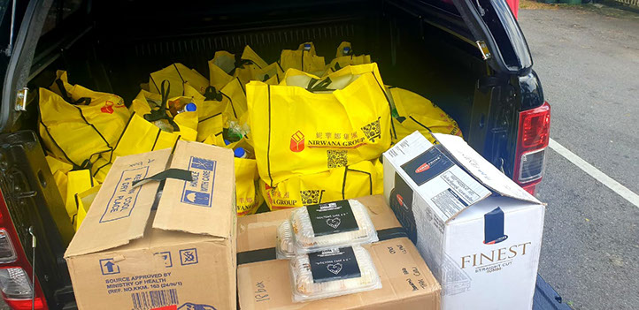 60 packs of cooked food and 20 bags of provisions ready to be given out.