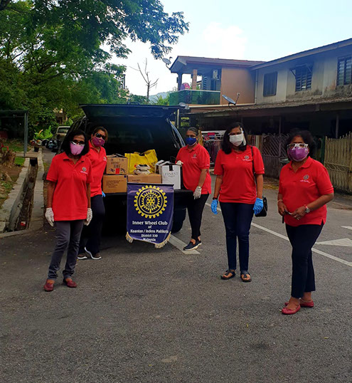 From right: District ISO Datin Pathma, Club Treasurer Samini, President Renuha, Secretary Shangari and VP Jeyarani equipped in PPE to serve the needy.