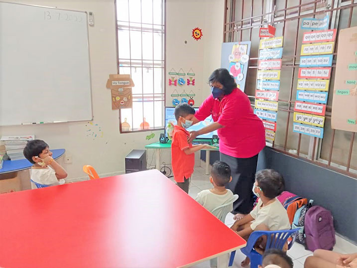 President Dr.Theyveeka talking about HFMD to the children