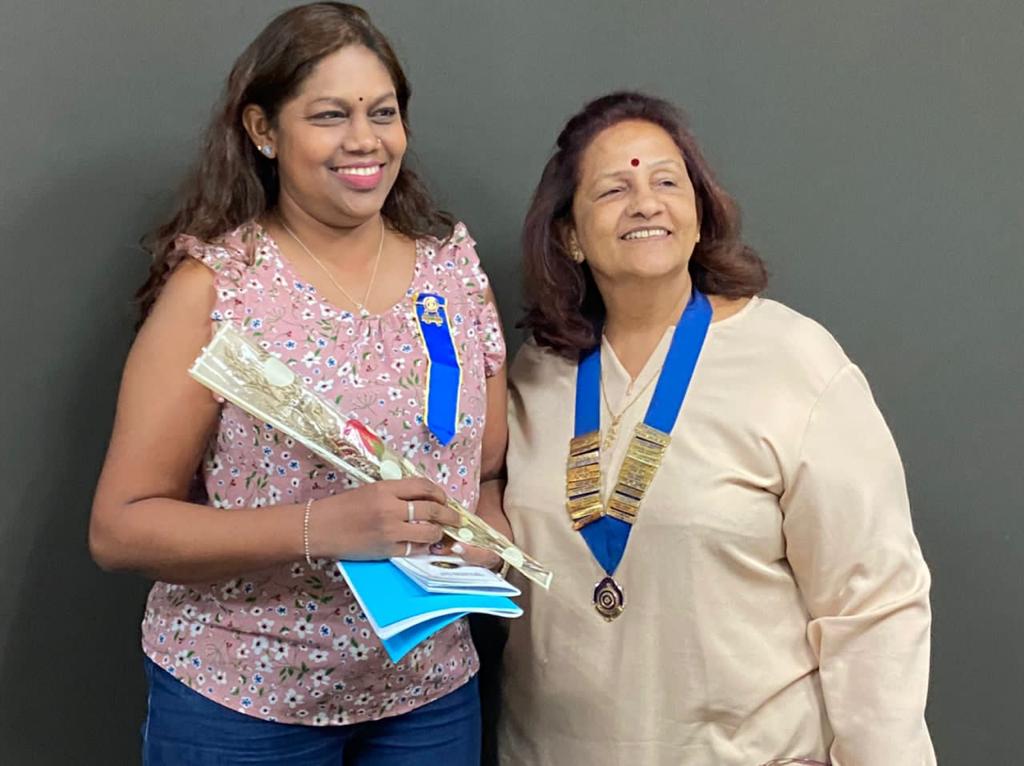 President Navarani Veithilingam with the newly inducted member, Swarnalatha Thuraisingam.