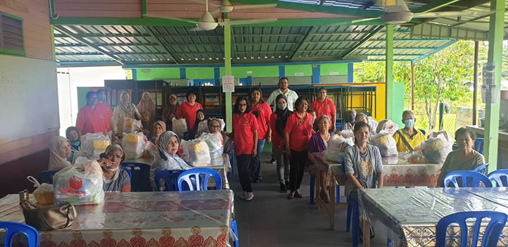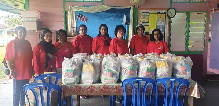 Members of Inner Wheel Club of Kuantan / Indera Mahkota ready to give away 20 packs of essential items
