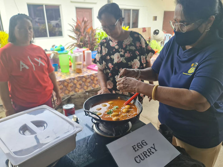 Egg Curry demonstration by PP Anurathe for the ladies of the settlement