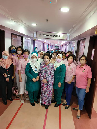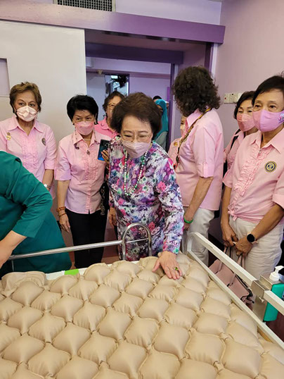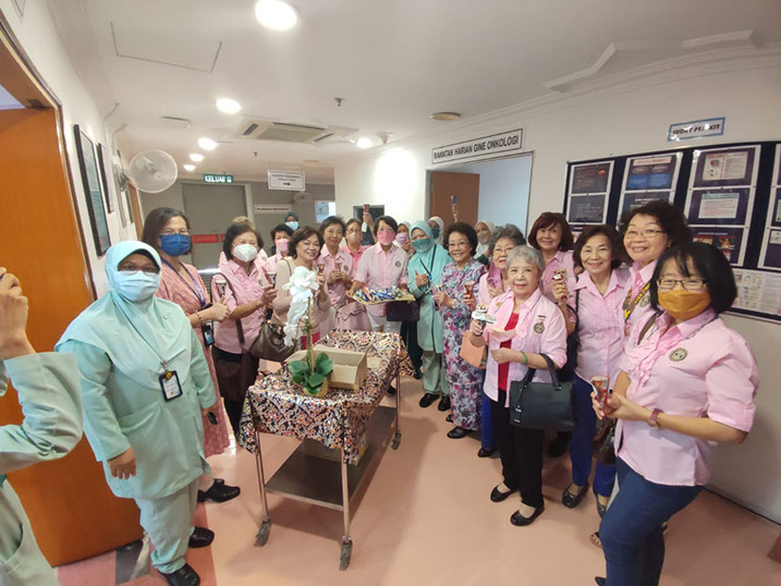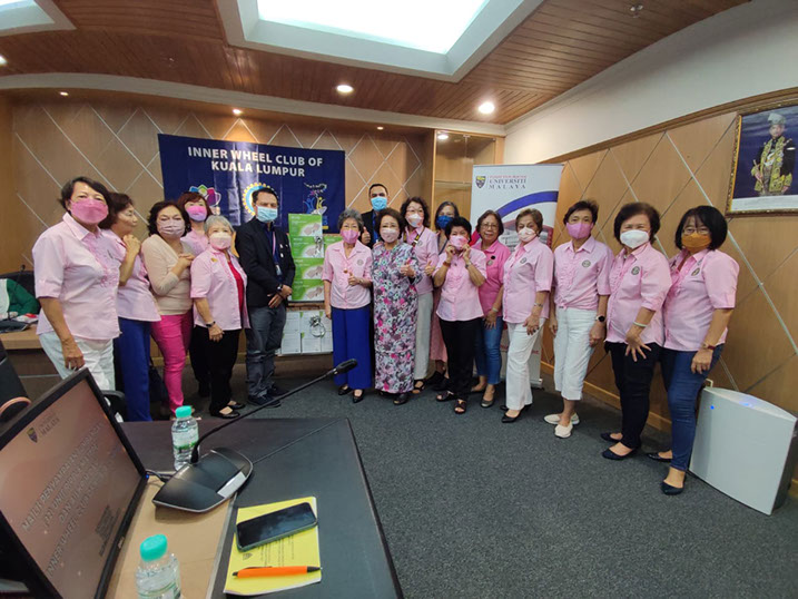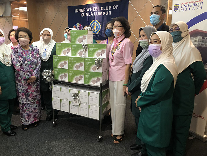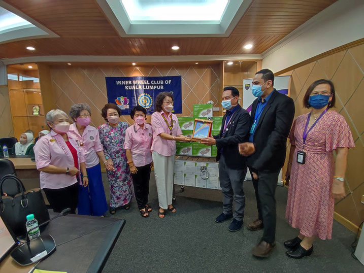 President Jinny handing over a box of Ripple mattresses to Deputy Director Dr Salleh, watched by Honorary member and others