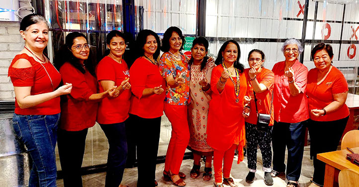 Members in rocking the red theme