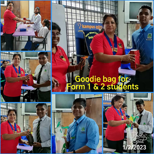 Goodie bag distribution to students by President Sarala