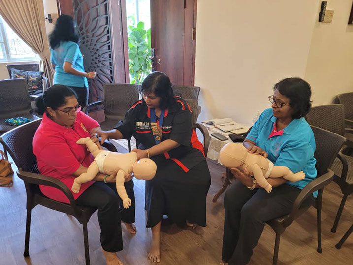President Theyveeka demonstrated how to handle babies when choking happens.
