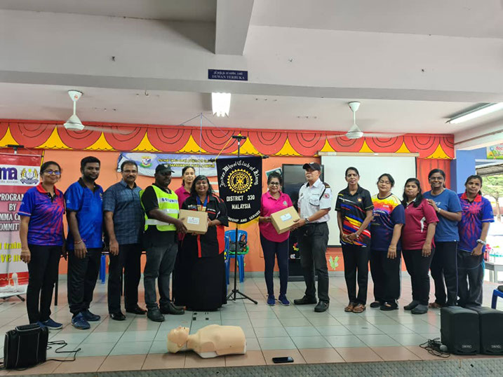 President giving a Hygiene Kit to the headmaster at SRJK Saraswathy