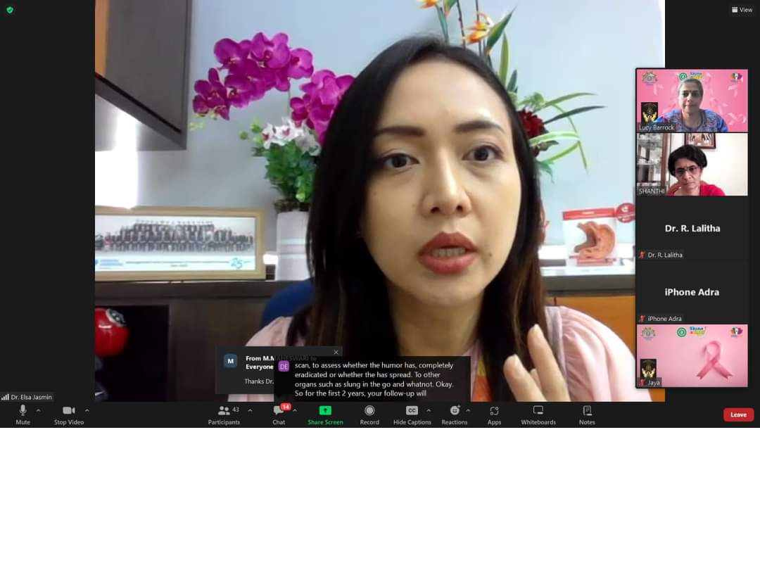 The Inner Wheel Club of Butterworth on Saturday 28th October 2023, in line with International Inner Wheel’s observance of Pink October – Breast Cancer Awareness month, organised a talk in collaboration with Pantai Hospital Penang. The club conducted whole project online via zoom to ensure maximum outreach and the invited speaker was from Pantai Hospital’s eminent General Surgeon Dr. Elsa Jasmin Roslan and there were some fifty participants joined online session.