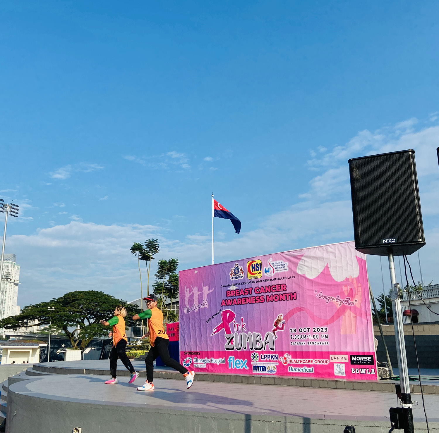 In conjunction with “Pink October” Breast Cancer Awareness Month, President Amy Nair of Kelab Inner Wheel Johor Bahru led the team to participate in the event “Pink Zumba’. The event was held in an effort to spread awareness and knowledge about breast cancer. It was organised by the Breast and Endocrine Surgery Department of Hospital Sultan Ismail Johor Bahru (HSIJB) in collaboration with Majlis Bandaraya Johor Bahru (MBJB).