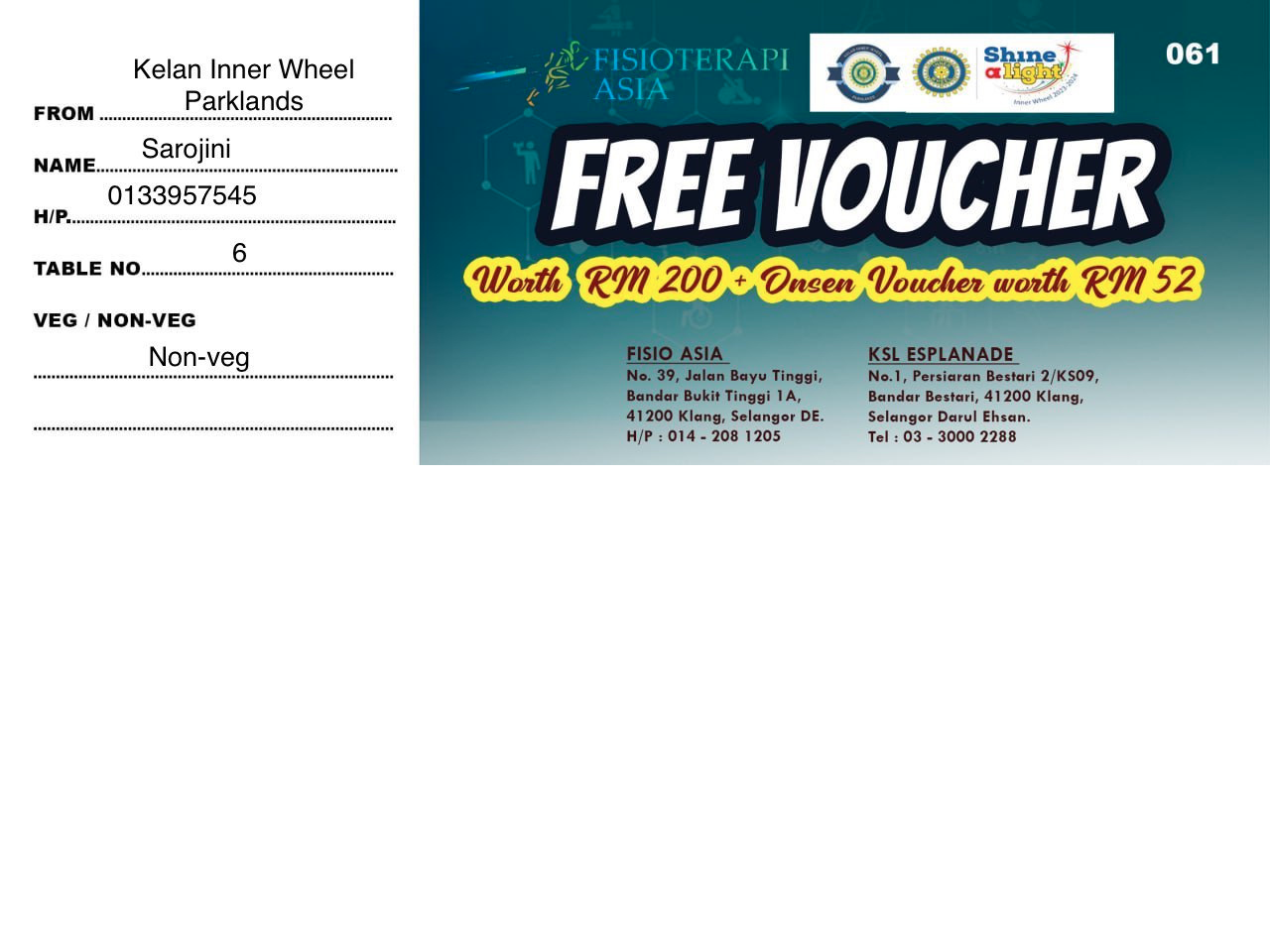 The club practiced E-invitation to invite guests for the Club’s Charter Night on 4th November 2023. Upon purchase of seats, E-receipts were issued as evidence of payment. Prior to the event the club distributed E-menu and E-Booklet to all the guests.