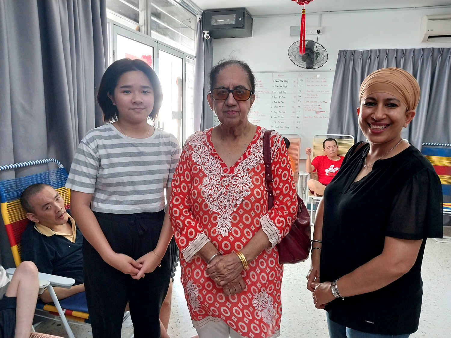 President Daljit and Khaswinder shared some light moments with Joyce, one of the volunteered caregiver