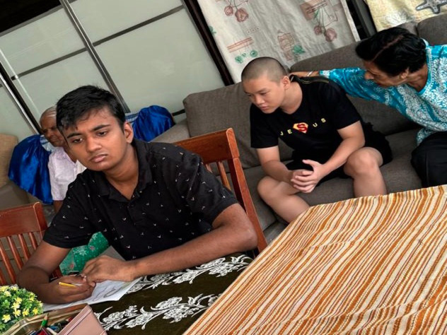 A Photograph was taken of President Daljit, IPP Arvind, and Khaswinder alongside some of the residents of Agape Home.