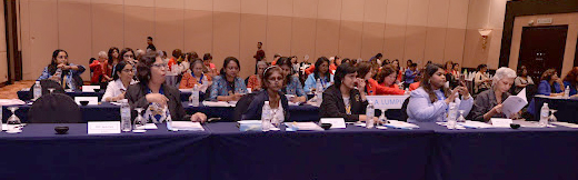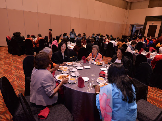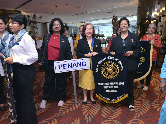 After an early breakfast at the foyer, participants from far and near rushed to the registration venue to be registered at the registration table manned by DS Lucy and DT Jasbir Kaur. A practice run of the roll-call of clubs was led by District Editor Jaya Ranjitham Samuel, IPDC Vimalavathi Thayaman Pillai and Extension Chairman Krishnaveni Mutthiahi. The official photographer was guided by DVC Sarawathy Veloo.The meeting was called to order at 9.30 am by Emcee DVC Sarawathy Veloo. All the 20 clubs were present for this meeting. Inner Wheel protocols were strictly adhered.