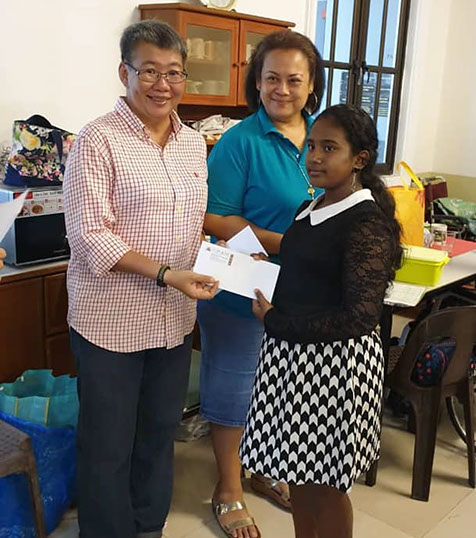Lovely picture of our Past President Merlin Gasper with Adelene Cheah from Hee Hee Ha Ha Charity presenting voucher.