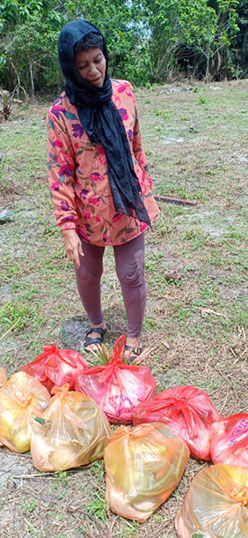 Toh Puan Datin Hajah Norisha bt Abdul Rahman personally supervising the distribution of food essentials.