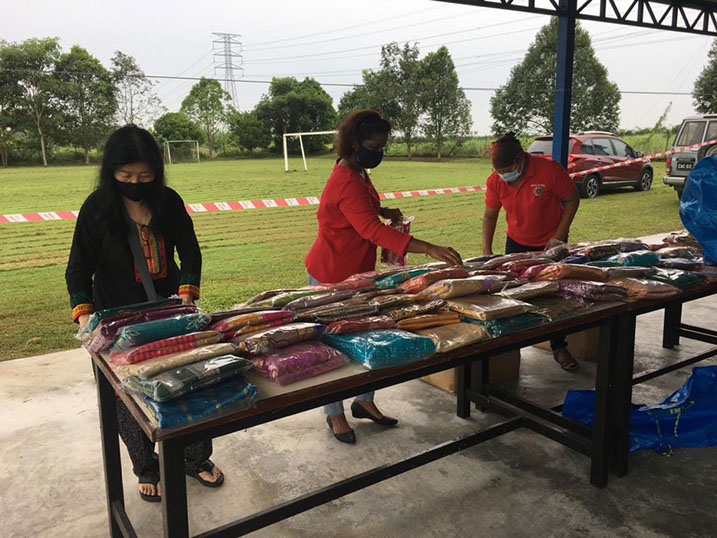 Members arranging pre-loved items at Gratis Baazar