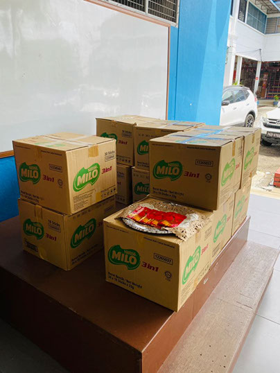 Boxes of groceries with ang-pow