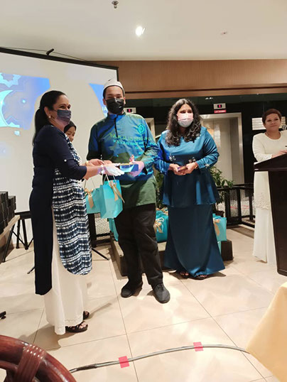DE Vimala and PP Pakialetchumi giving away the goodie bag and “Duit Raya” to the children