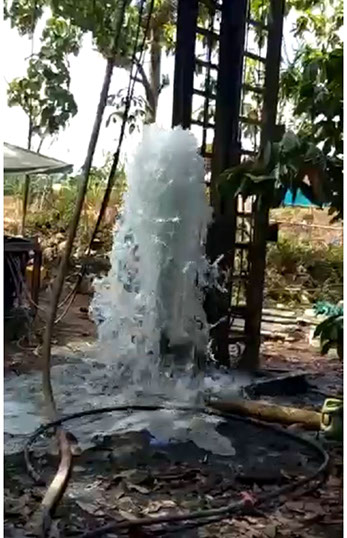 Drilled well No. 2 was also successful with water gushing out from the ground.