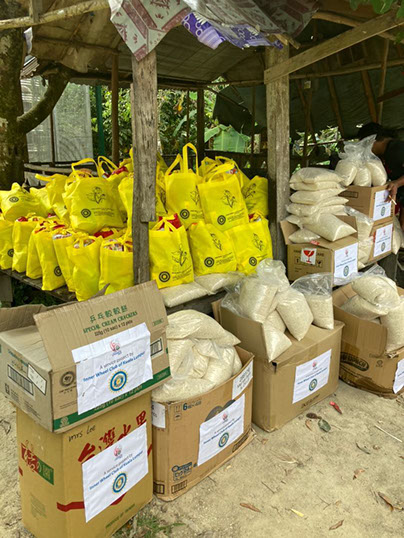 DEC Juanita Lee and her helpers loading groceries into the delivery truck bound for Kampung Leleh.