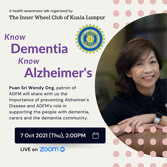 Announcement of the talk by Puan Sri Wendy Ong, patron of Alzheimer's Disease Foundation of Malaysia.
