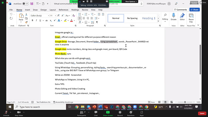 Some of the topics covered by Vidhya Mol