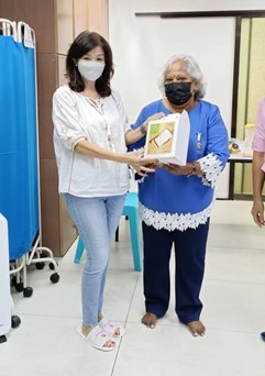 Onsite participant receiving tempeh starter kits from DNR Parimala Satheesan