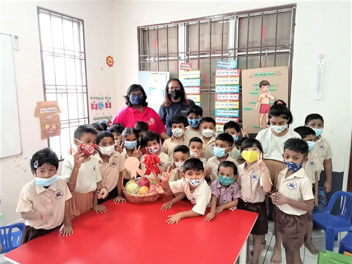President Dr.Theyveeka talking about HFMD to the children