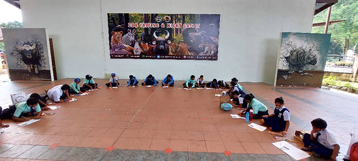 Students engrossed in the colouring contest.