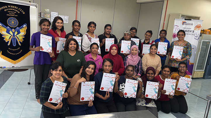 Participants proudly showing off their Certificates with officials from Inner Wheel Club of Butterworth and Kolej Komuniti Seberang Jaya.