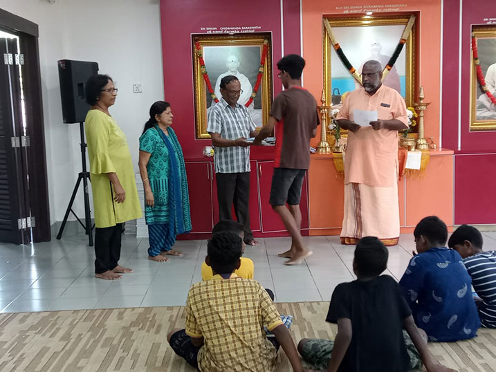 The boys receiving their Deepavali gifts.