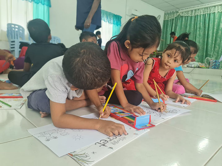 Children coloring with their new coloring boxes which were contributed by IWC Ipoh’s members