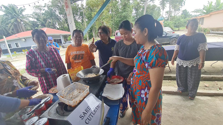 Ladies at the settlement cooking sardine cutlets together