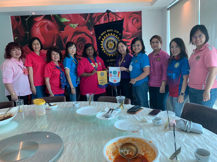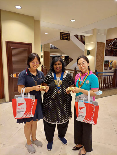 Giving an AIDS to President Olivia Wong and PP Yvonne Yeo of IWC Kota Kinabalu