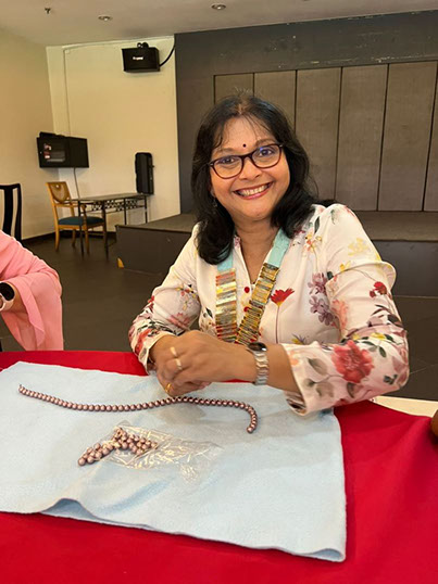 DC Veni is all smiles and delighted with the pearl stringing