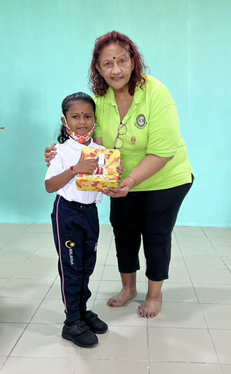 President Navarani presenting a pair of spectacles to one of the students.