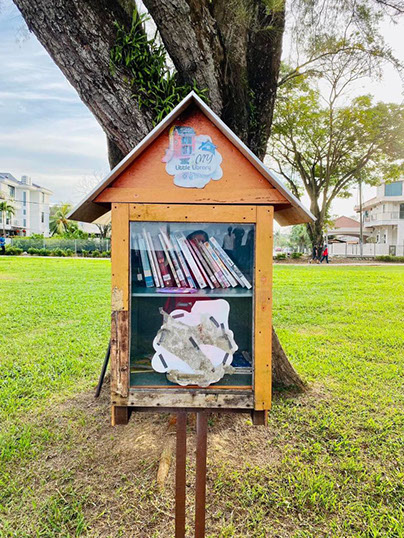 One of several book stations set up to encourage the reading habit.