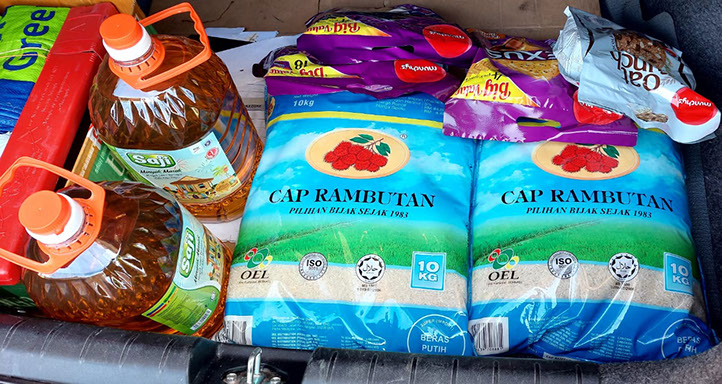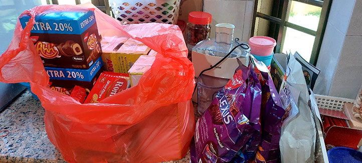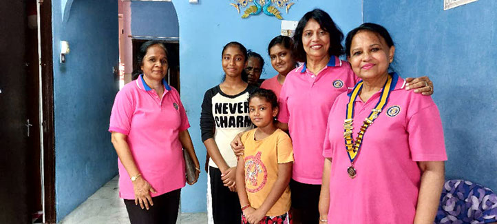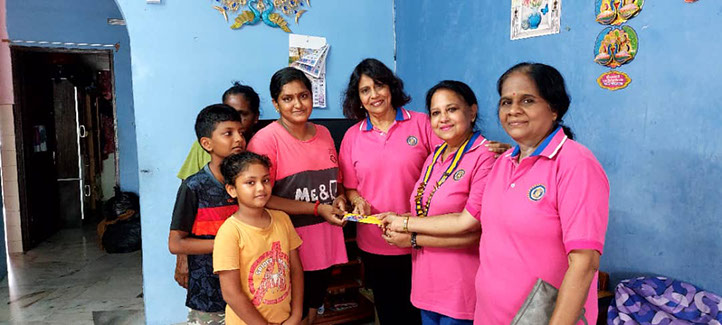 R-L G.Pushpa, President Harvinder Kaur and Harbhajan Kaur presenting the donations.