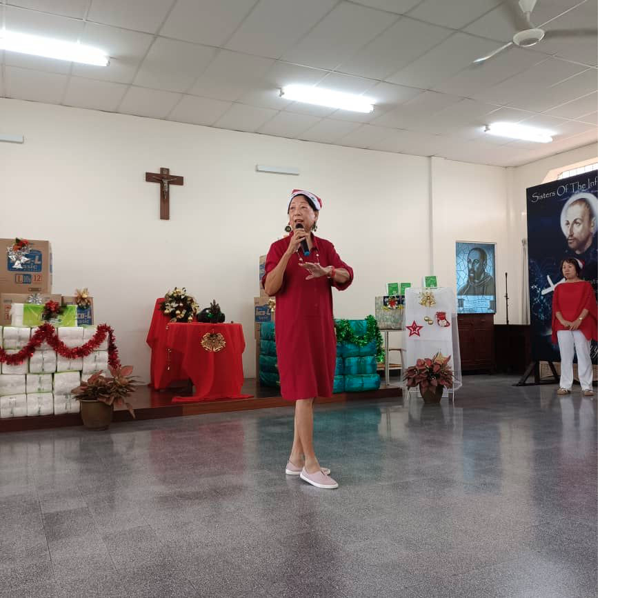 Vice President Lena Chua on behalf of IWCKL presented a cheque to Sister Stephanie, Sister in Charge. VP Lena Chua gave a speech thanking IJC for allowing IWCKL to provide the Christmas Lunch and Fellowship.