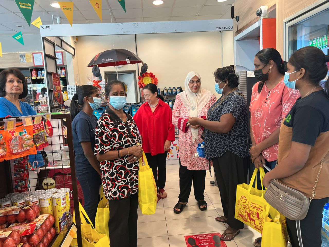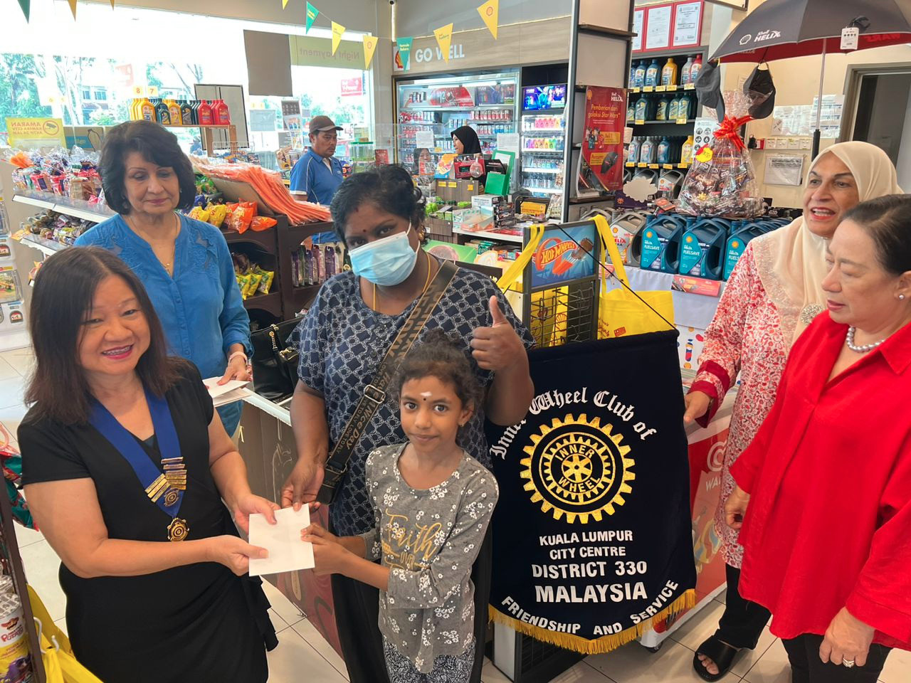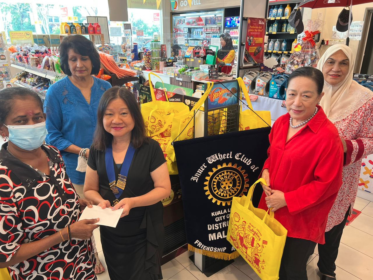 In keeping up with this spirit of sharing, the treasurer, Bibee, of the Inner Wheel Club of KLCC, organised a charity event on 4th of December, 2023 at a Shell Station owned by her son Yassin, in Kota Damansara. There were 5 charity recipients from the government PPR flats, mostly the single mothers. Present from the club were the club president Karen Loo, Datin Pearl, club treasurer Bibee and the club secretary Jit Dev. The president of the club presented RM100 cash and a goody bag each to the recipients.