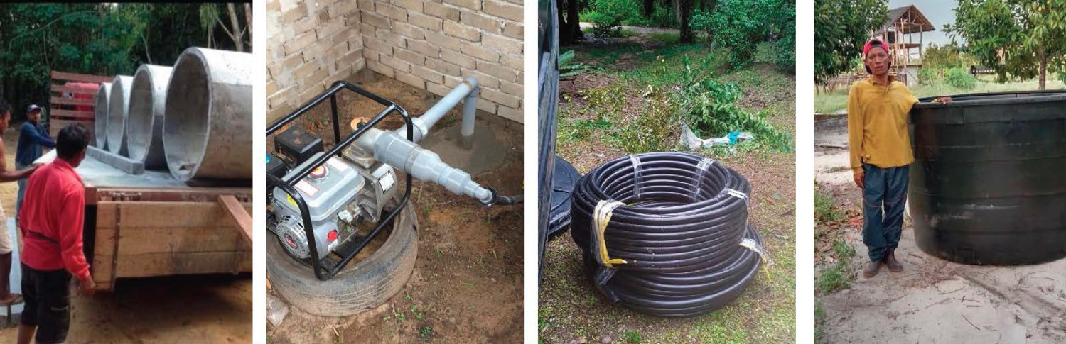 Between November 2023 and April 2024, 43 fresh water wells were built in the villages of Kampung Bangkong, Gong, Kerpal, Lanjut, Pinang, RPS Runchang, Sawah Batu, Sena, Seri Bangkong, Serun, Simpai, Tanjung Kelapa, Terubing Simpai and Wah Wah, in a region spanning 130 kilometres comprising villages from Chini to Rompin and Pekan districts in the state of Pahang. Each well was dug to 15 feet deep and fitted with concrete rings, a water pump, a 600-gallon storage tank and piping, and can supply fresh water for several families.
