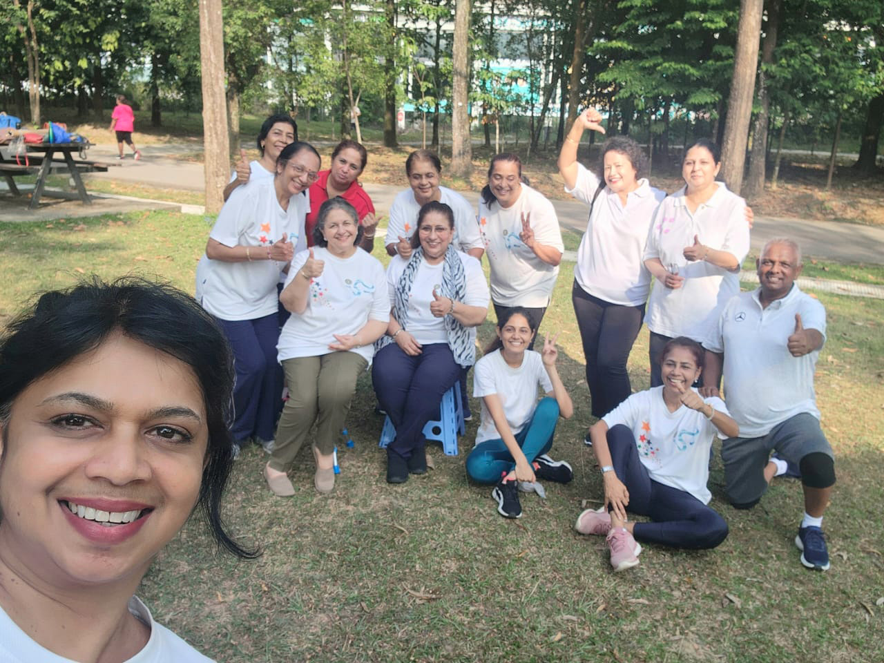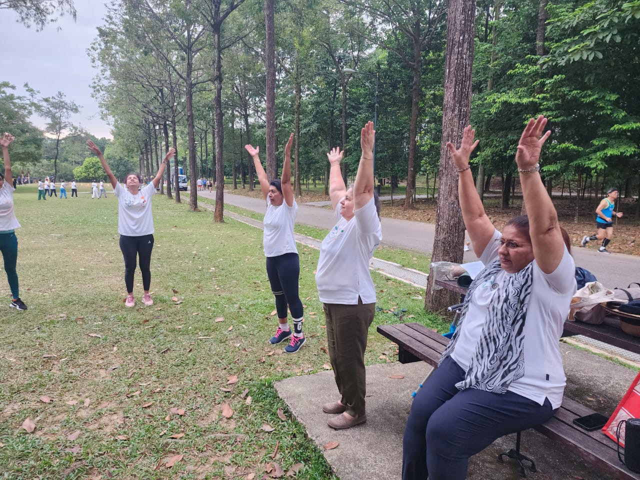 On 3rd August 2024, members who could join in the outdoor programme assembled at Bukit Jalil Recreation Park at 7.00am. 12 members, dressed in their white Club tee shirts and President Rani’s husband, Mohan, a Rotarian himself, and daughter, Dr Deivina, eagerly awaited Pres Rani to kickstart the programme.