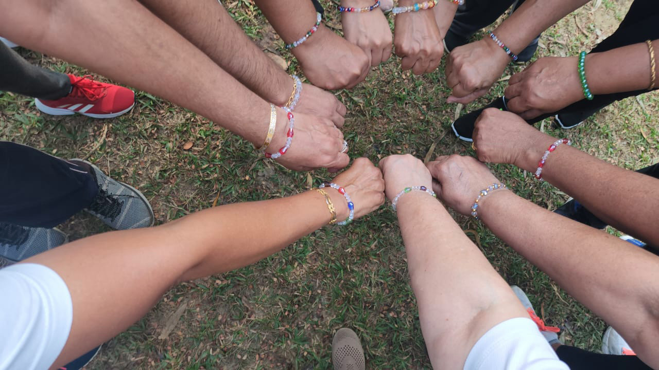 It was a morning to nourish and remember. PCC Rajani led the group through a series of processes to set the mood right from start. From contemplative breathing to simple stretching all the while focusing on being grateful. Gratitude to the Universe from waking up that morning, to being in the Park with caring friends, to the environment around us and the opportunities given. New member Indrani took the members through stretching exercises to warm up which prepared them for a relaxed walk around the park. Next, was member Shamala Bhaskaran and organiser Dr Krishnaveni led through 2 challenging games. So much laughter and cheering like girls back at school. It was truly a Friendship Day to be grateful for. Friendship bracelets were exchanged among fellow members to commemorate the experience.