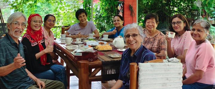 At around 5pm, President Vijayalaxmi Kandasamy and the committee members joined Linda and Halim for a heartwarming tea session at their porch admist the lush greenery of the garden. Halim communicated by writing on his board, delighting everyone with his antics and bringing laughter to the group. It was a learning experience for the visiting members, highlighting the need to embrace patience, tolerance and kindness. The members also viewed Halim’s art gallery, witnessing how he channels his energy in a meaningful way.