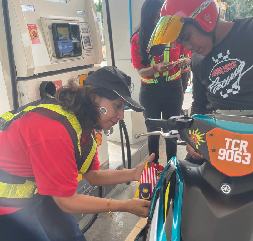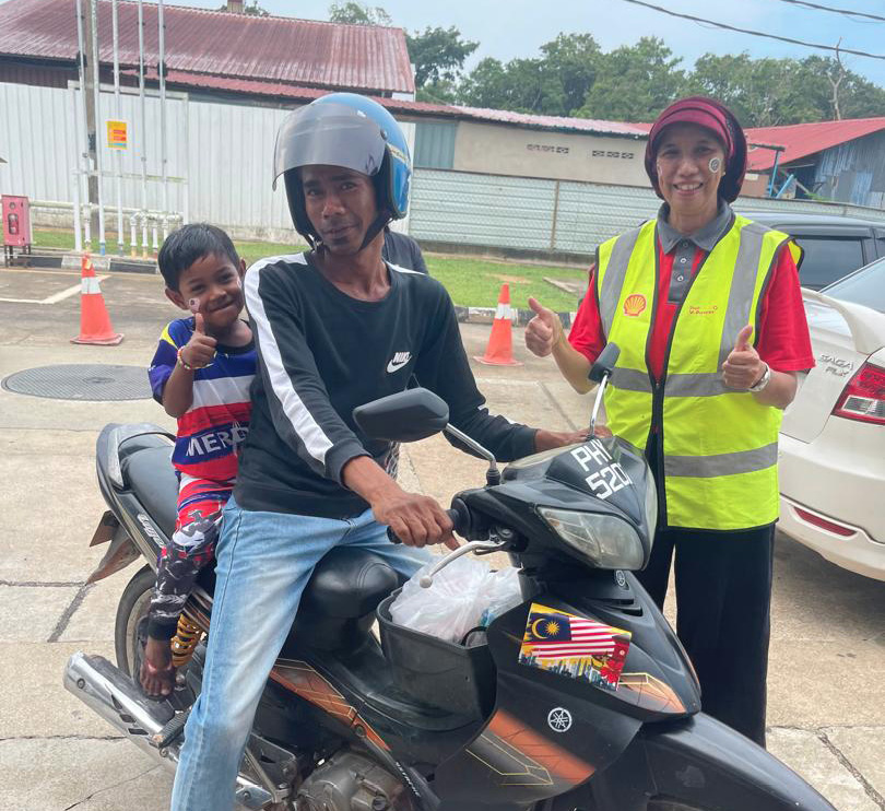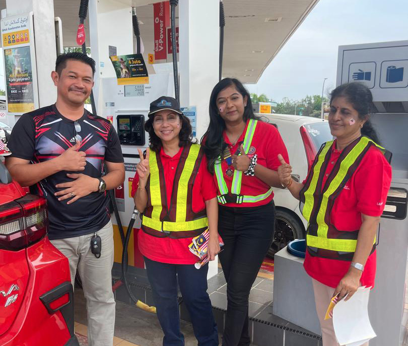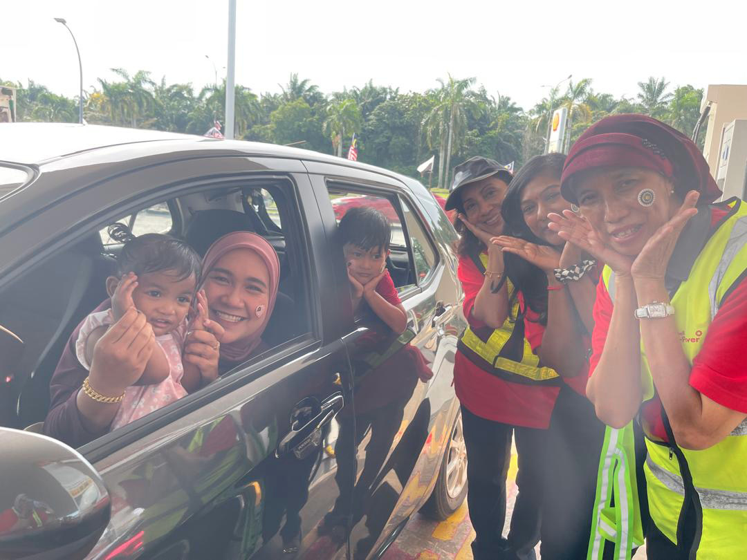 The IW ladies in Merdeka mood celebration with a happy family who stopped by to refuel.