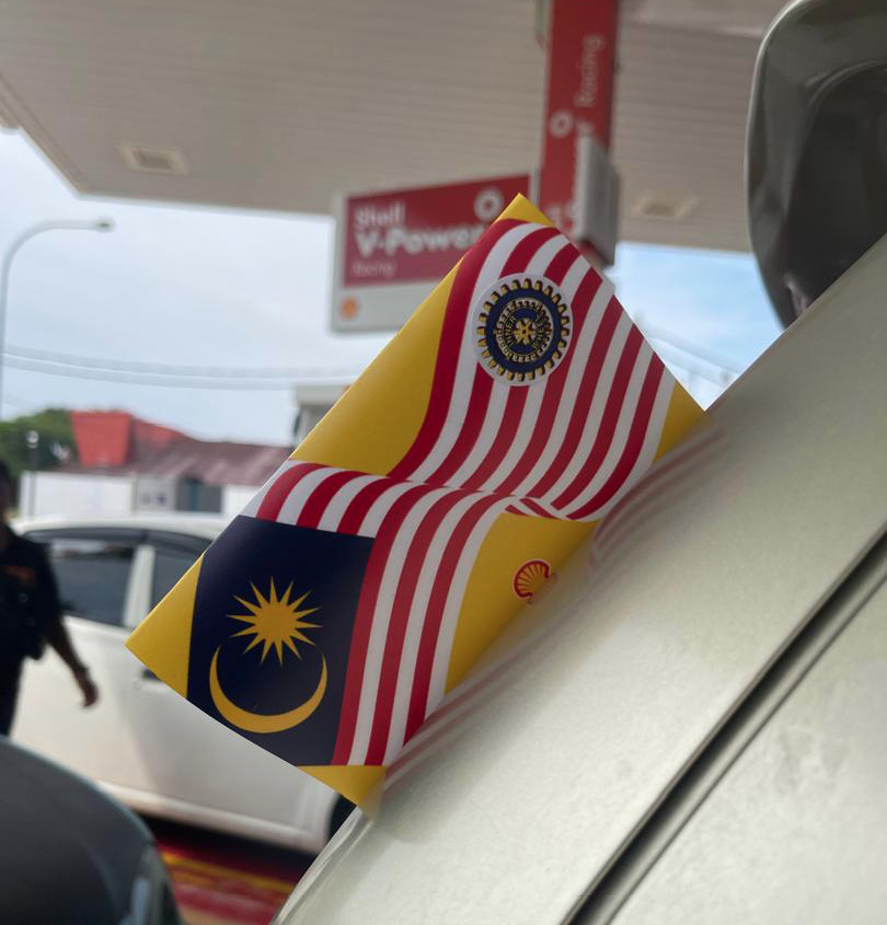 Customers who hit the road due to the long weekend were in a holiday mood and welcomed the free gifts happily. All took the opportunity to sing along the Hari Merdeka tune while President Samini and her members stick