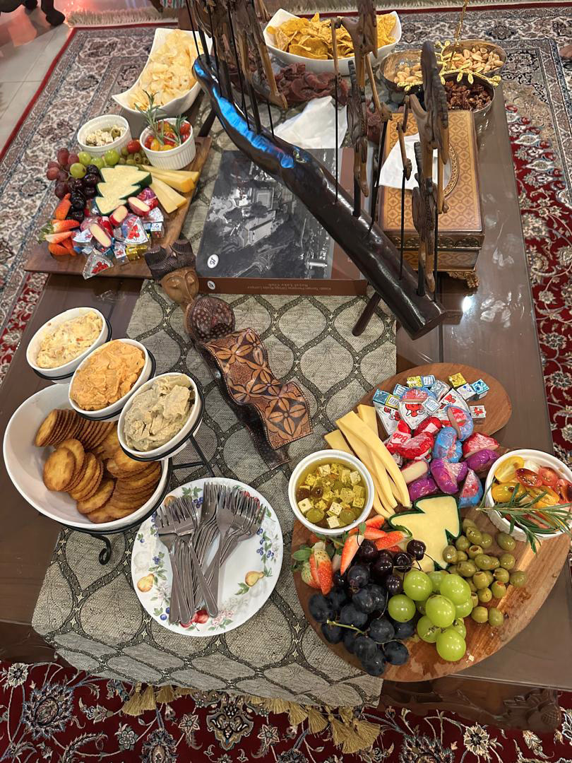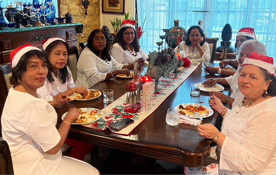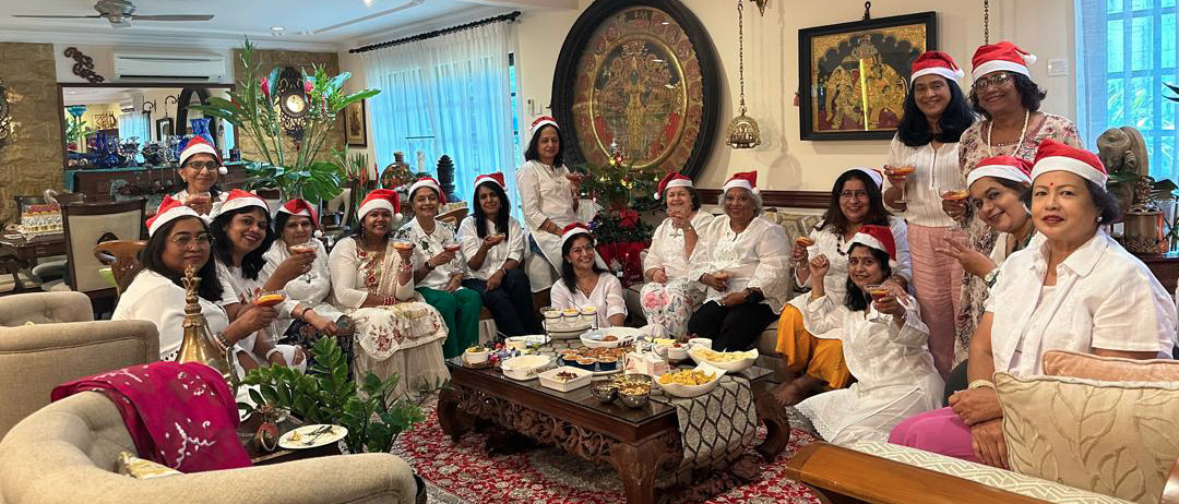 With “I’m dreaming of a white Christmas” playing on the minds of all who attended, members from Inner Wheel Club Subang Selangor (IWCSS) dressed in white tops, walked into Club Charter member and NR Shanti Menon’s exquisitely decorated and spacious bungalow in Country Heights on December 15th 2024, all set for a day of fellowship and celebration. A super-duper and gracious host as always, NR already had laid out the appetisers and pre-lunch delicacies for members as they arrived. A loaded cheese board with fruit, vegetarian mushroom pies and crackers with dips were quickly devoured by most who didn’t have time for breakfast.