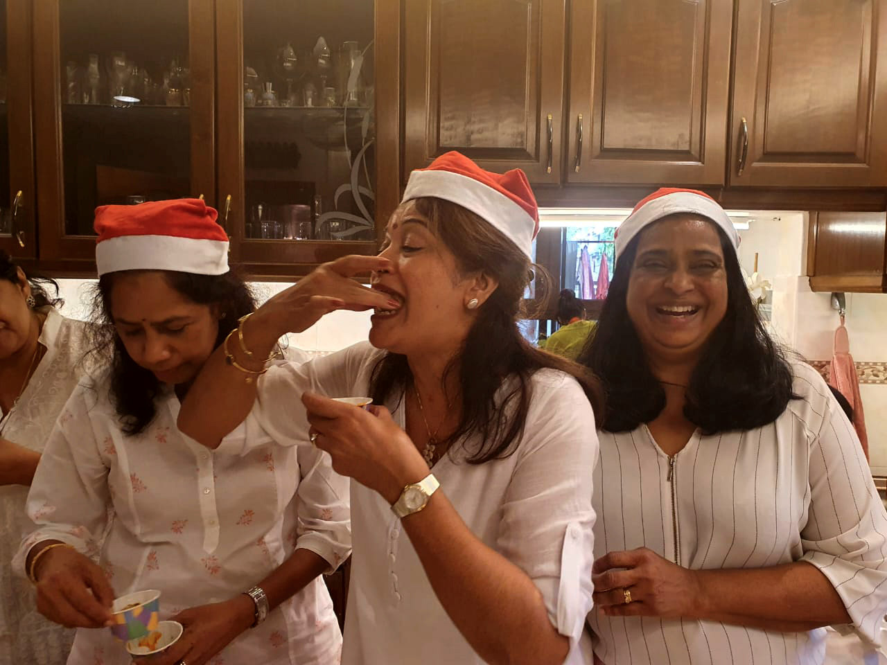 And now for the fun part and fellowship. As it was a potluck party, the table was filled with dishes to make one drool. Vegetarian Briyani, succulent chicken sambal, mutton dalcha, spicy prawn sambal, yummy fish and veg cutlets, variety of salads and raita. Everyone tucked in and went for seconds and thirds. The much-awaited Secret Santa session continued and the chatter and glee in receiving gifts just took the celebration to the next level.