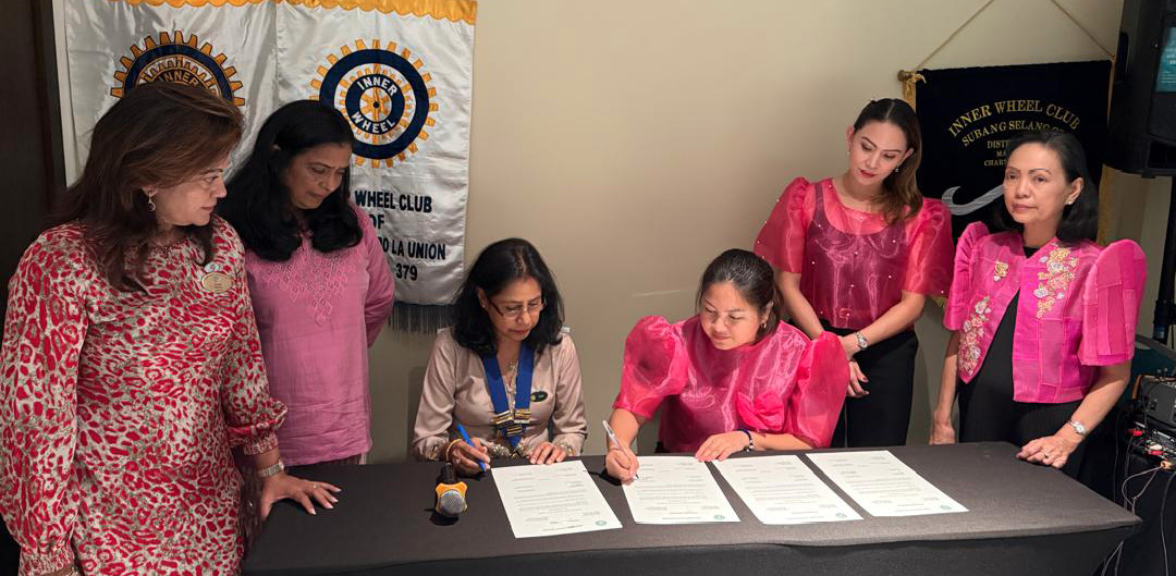 The next day, for the signing ceremony, IWCSFLU organized a fellowship dinner at Awesome Hotel in San Fernando. It started off with the Inner Wheel prayer being recited by PP Julie Lim followed by the playing of the National Anthem of both Malaysia and Philippines. The signing of the Sisterhood Agreement by President Christine Joy and ISO Phaulyne Bolong of IWCSFLU and President Rani Mohan and ISO Rema Menon of IWCSS was witnessed by NR of D330 and 331, Shanti Menon and Dr. Jeisela Gaerlan, First National Vice President, Inner Wheel Club of the Philippines. The President of IWC Metro Valenzuela, Ms Pinky Dayta and members were guests at this dinner.